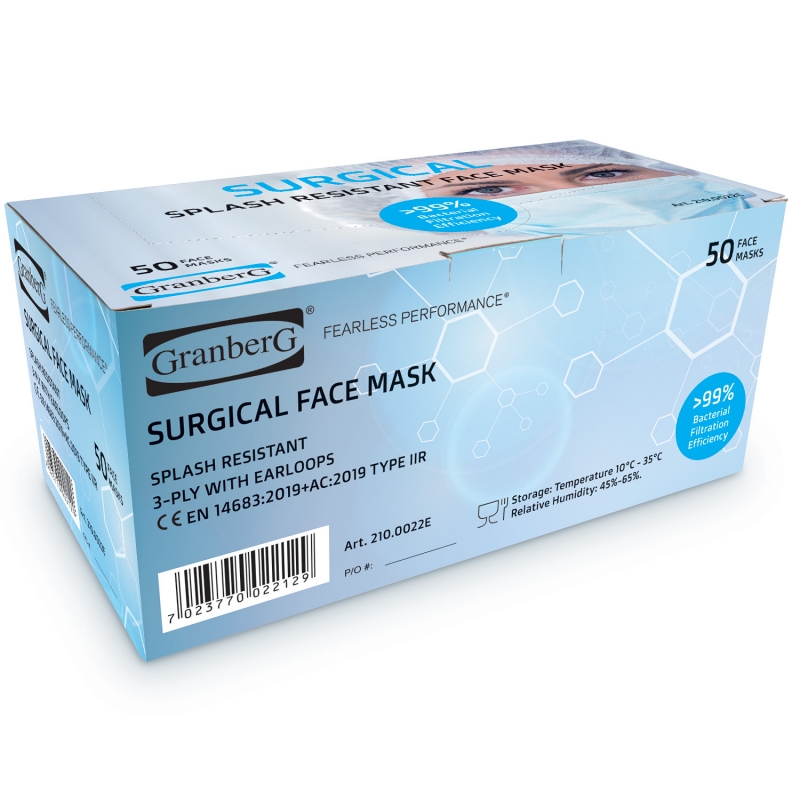 • I henhold til EU-standarden for medisinske munnbind EN 14683:2019+AC:2019.